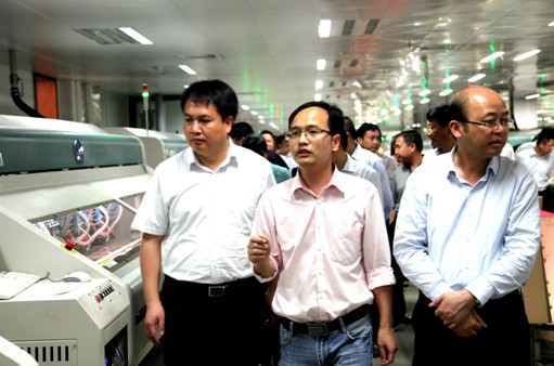 (鄧總陪同賴書記視察壓合車間)