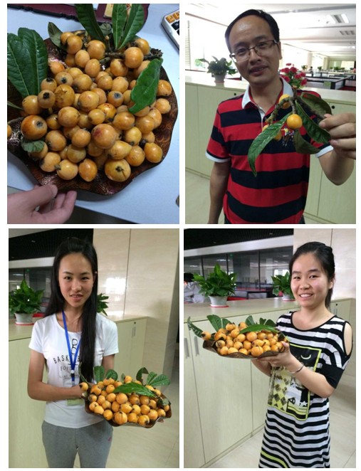 不過(guò),果實(shí)都熟了,哪有不吃的道理呢,誰(shuí)能忍受這個(gè)誘惑嘛!作為人政部的一員,當(dāng)然要體恤吃貨同事們的心思,乘著好天氣,把黃金枇杷全給收了。純天然沒(méi)打過(guò)農(nóng)藥的果子,吃起來(lái)的感覺(jué),那是根本停不下來(lái)?。〕缘耐瑫r(shí)當(dāng)然忘不了現(xiàn)場(chǎng)分享的啦,見(jiàn)者有份,哈哈。