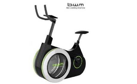 這款產(chǎn)品的概念其實(shí)非常簡(jiǎn)單,它是一款室內(nèi)自行車健身器,也是一臺(tái)洗衣機(jī),車輪部分集成了類似滾筒洗衣機(jī)的區(qū)域,將衣物放置其中、踩踏踏板,便可產(chǎn)生洗衣所需的動(dòng)力,從而實(shí)現(xiàn)清洗操作。