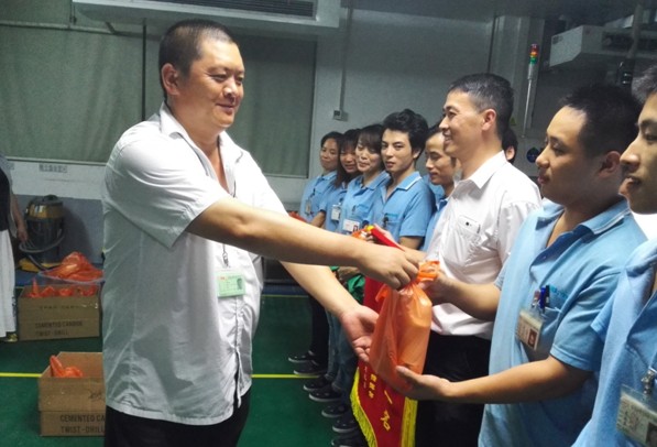 6月3日,由5S戰(zhàn)役動(dòng)力隊(duì)大隊(duì)長(zhǎng)黃冬菊及維修環(huán)保區(qū)隊(duì)長(zhǎng)楊健康為本次專項(xiàng)評(píng)審的第一名——挑戰(zhàn)隊(duì)頒發(fā)錦旗與戰(zhàn)利品。
