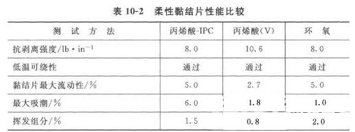 黏結(jié)片的作用是黏合薄膜與金屬箔,或黏結(jié)薄膜與薄膜(覆蓋膜)。針對不同薄膜基材可采用不同類型的黏結(jié)片,如聚酯用黏結(jié)片與聚酰亞胺用黏結(jié)片就不一樣,聚酰亞胺基材的黏結(jié)片有環(huán)氧類和丙烯酸類之分。選擇黏結(jié)片則主要考察材料的流動性及其熱膨脹系數(shù)。也有無黏結(jié)片的聚酰亞胺覆銅箔板,耐化學(xué)藥品性和電氣性能等更佳。常見柔性黏結(jié)片性能比較見下表。