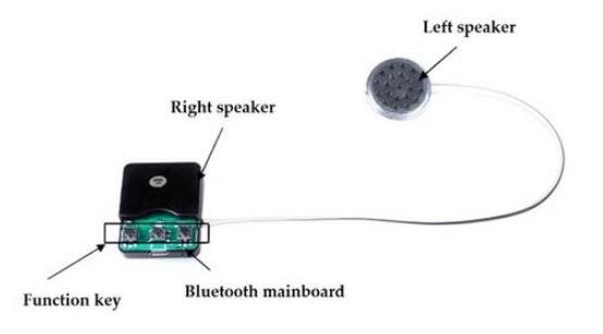 其實這款藍(lán)牙帽,技術(shù)上并不算太先進(jìn),簡單來說就是將一個集成藍(lán)牙模塊、電池、揚聲器的小塑料盒設(shè)計在帽子一側(cè);同時線纜連接著另一個揚聲器,位于帽子另一側(cè),并緊貼耳朵。