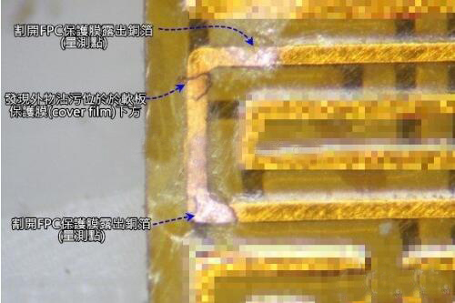 比較難的是從最末端的金手指可以量測到開/斷路,卻怎么也找不到銅箔斷裂的位置,找不到位置,就難以確認是什么原因引起的斷裂。
