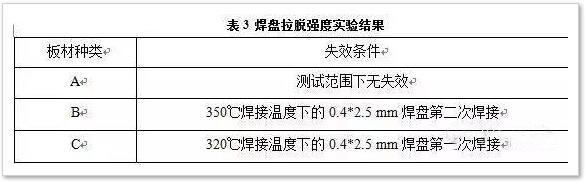 從結(jié)果中可以得出,焊接溫度較高時(shí),就焊盤的可靠性而言,A>B>C。