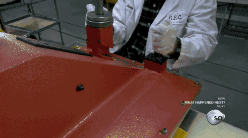 等到電路板冷卻下來,就可以人工放進(jìn)模具里,用沖壓機(jī)做出指定的形狀后,一個(gè)柔性電路板就正式完工了。