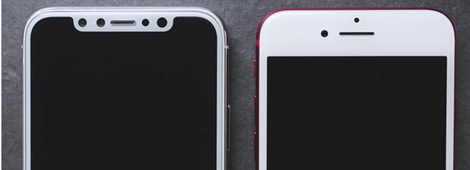 (如果傳聞?wù)娴目孔V)蘋果似乎收窄了屏幕邊框,跟iPhone 7比確實(shí)窄了一點(diǎn)點(diǎn),但在白色玻璃的映襯下,邊框?qū)挾纫琅f感人;從尺寸上對(duì)比的話,屏幕跟iPhone 7 Plus相近的iPhone 8模型,機(jī)身寬窄度卻跟4.7英寸的iPhone7類似。這就是全面屏的好處。