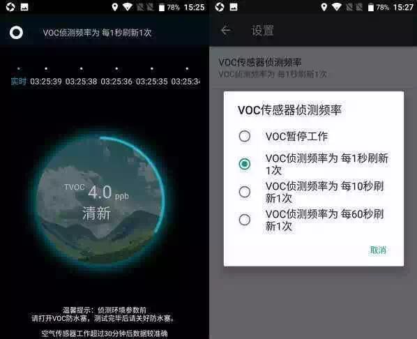 這項功能比較實用,打開手機右側的VOC防水塞,打開手機內置APP就可以實時監(jiān)測。
