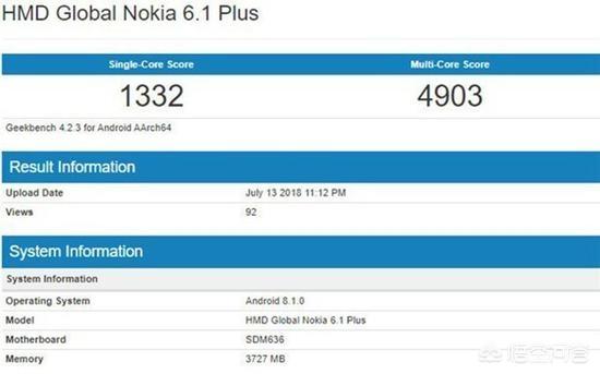從跑分上來看,諾基亞6.1plus的單核成績?yōu)?332 多核成績?yōu)?903。這個成績在目前安卓陣營中處于中等水平。