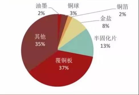 其上游為各類生產(chǎn) PCB 的原材料,主要包括覆銅板、銅箔、銅球、半固化片、金鹽、油墨、干膜及其他化工材料,柔性電路板的主要原料還包括覆蓋膜、電磁膜等。