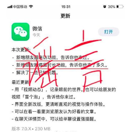 事情的由頭是網(wǎng)友在網(wǎng)上分享了一張微信更新的截圖,截圖中的文字顯示,微信將更新新功能,其中包括新增朋友圈來訪功能,而關于這個功能的闡述更是讓人聯(lián)想翩翩,內(nèi)容如下“告訴你他來過。新增朋友圈停留時長功能,告訴你他來了多久。