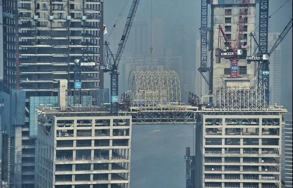 更令外媒感到不可思議的是,用來連接4座大樓的三個(gè)分段均有1100噸重,它們在地面建造好后,需用起重機(jī)吊到近300米的高空再與大樓連接,形成廊橋。