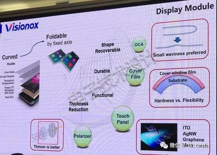 如對偏光片的要求越來越薄、希望觸控屏幕做到可折迭、蓋板需要兼顧表面硬度和可彎折性,以及各個功能之間的連接材料如OCA膠水,也對軟性AMOLED帶來新的挑戰(zhàn)。