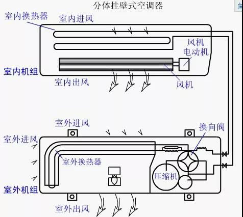 一般家用分體式空調(diào)運(yùn)行原理示意圖