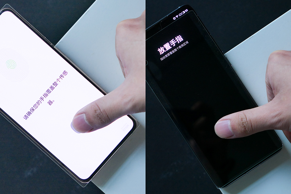 ▲ 貼鋼化膜后的 OPPO Find X2 Pro 和 vivo X60 Pro+ 正常錄入指紋