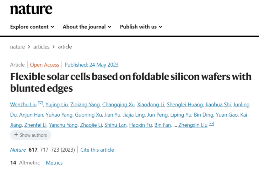 柔性電路板廠深深了解到,5月24日,中國科學(xué)院上海微系統(tǒng)與信息技術(shù)研究所(以下簡稱中科院上海微系統(tǒng)所)官網(wǎng)消息,中科院上海微系統(tǒng)所的研究團(tuán)隊(duì)研制出可以像紙片一樣彎曲,且不易斷裂的高柔韌性單晶硅太陽電池。相關(guān)成果在國際學(xué)術(shù)期刊《自然》(Nature)發(fā)表,并被選為當(dāng)期的封面。