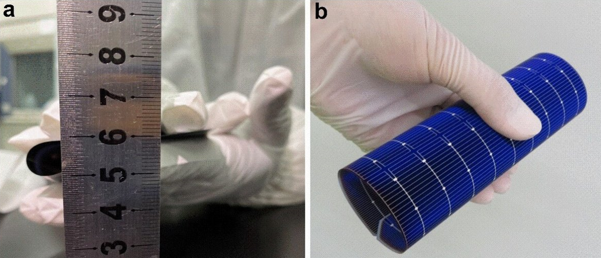 據(jù)了解,現(xiàn)在常見的光伏太陽電池都是由單晶硅制成的,單晶硅作為一種脆性材料,在施加應(yīng)力時(shí)極容易破碎,尤其在減薄其厚度以降低成本的時(shí)候,它就更容易碎。在過去大角度彎曲而不損壞的硅片幾乎不可能實(shí)現(xiàn),其主要原因就是硅片的力學(xué)特征限制了其柔韌性。
