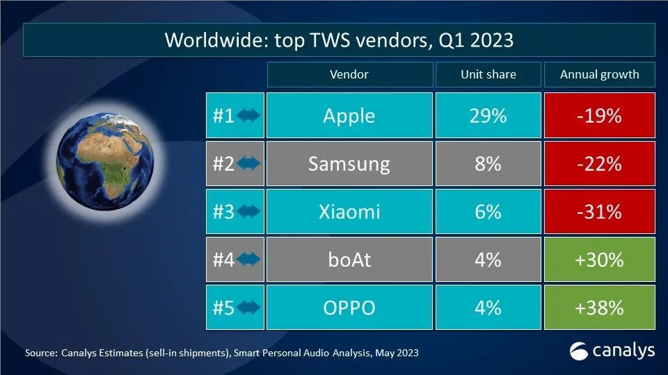 由于2022年出貨爆增后市場趨于飽和以及經(jīng)濟(jì)低迷等因素,TWS出貨量出現(xiàn)兩位數(shù)的下滑。廠商面臨白熱化的競爭,難從產(chǎn)品差異化方面突圍。部分廠商為維持生計(jì)大不惜幅降價(jià)甚至降低產(chǎn)品品質(zhì)。為了在TWS市場中保持競爭力,領(lǐng)先廠商使用最佳策略,試圖獲取更多市場份額。
