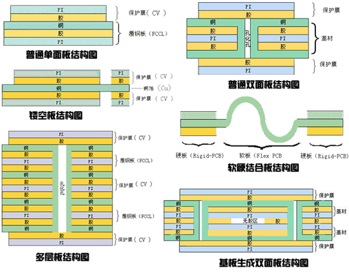 現(xiàn)代工藝現(xiàn)代FPC組成多采用銅箔作為導(dǎo)電層、聚酰亞胺作為基材絕緣層、膠黏劑作為貼合層(部分產(chǎn)品已經(jīng)省去)制成撓性覆銅板(Flexible Copper Clad Laminate 簡(jiǎn)稱 FCCL),再將成型覆銅板利用蝕刻顯影電鍍加工為成型產(chǎn)品。以市面上常見(jiàn)的單層板為例,其加工工序多達(dá)二十余道,除去上述核心步驟外,還需進(jìn)行鉆孔、貼干膜、對(duì)位、表面處理、貼覆蓋膜、電測(cè)、沖切等其它步驟。由此可見(jiàn),一片小小的柔性電路板也飽含科技含量和匠人精神。