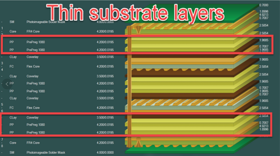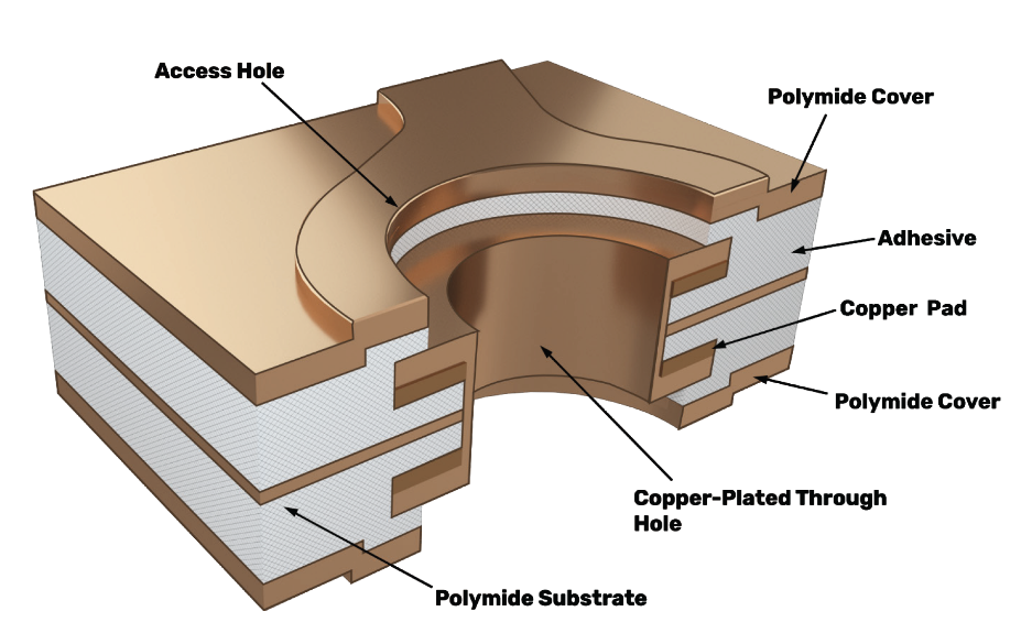 這樣就得到了柔性可彎曲電路,它可以扭曲、折疊并彎曲到狹小的三維空間中,這與標(biāo)準(zhǔn)PCB的扁平剛性結(jié)構(gòu)不同。
