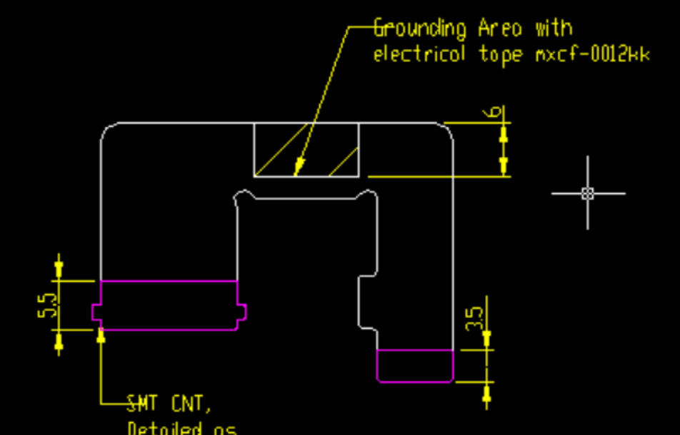 為了考慮ESD或其他需求,結(jié)構(gòu)工程師會(huì)要求在FPC上某些地方添加漏銅區(qū),如下圖所示,這些漏銅是沒有焊接需求的,所以在設(shè)計(jì)時(shí)不需要開鋼網(wǎng)。